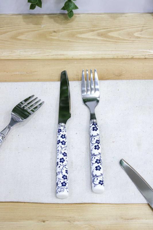 سرویس قاشق و چنگال وارداتی ساخت چین طرح گل آبی جنس دسته سرامیکناموجود