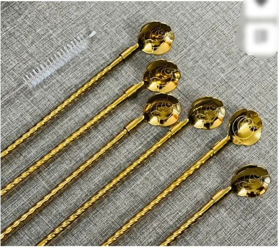 قاشق شربت خوری وارداتی ساخت چین مدل نی دار با نی شور رنگ طلائی جنس استیل درجه یک
