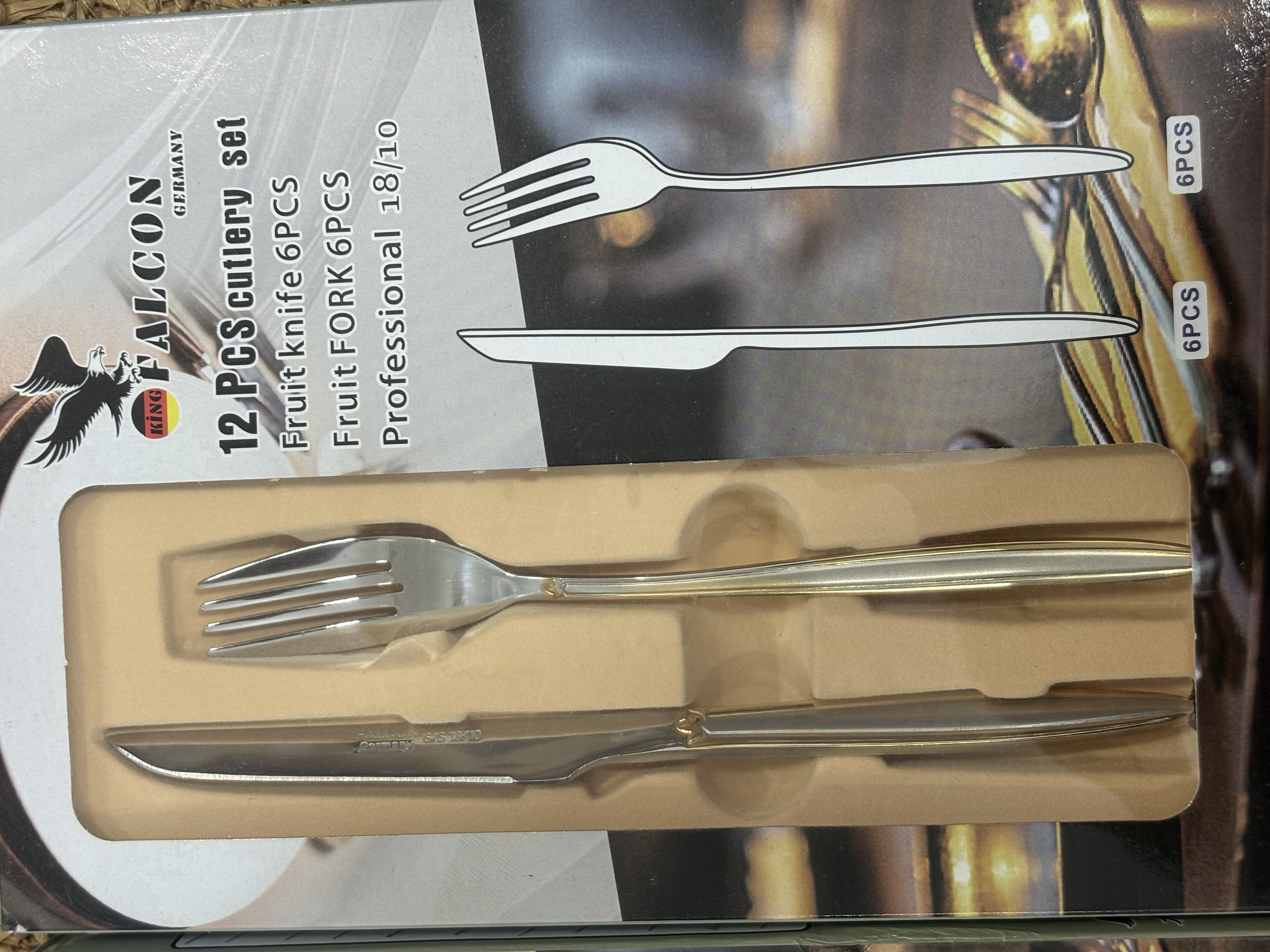 کارد و چنگال مارک فالکون وارداتی ساخت چین تحت لیسانس آلمان مدل طلایی سیلور جنس استیل ۱۸۱۰ درجه یک
