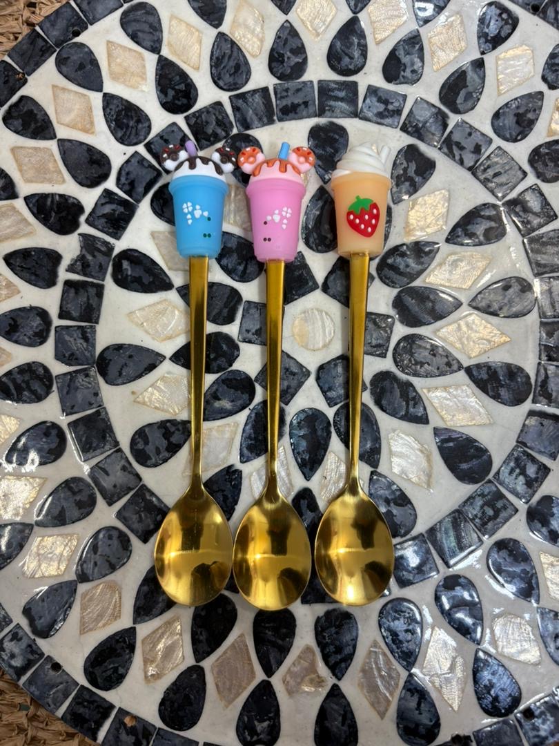 قاشق شربت خوری وارداتی ساخت چین طرح گوزنی رنگ طلایی جنس استیل درجه یک