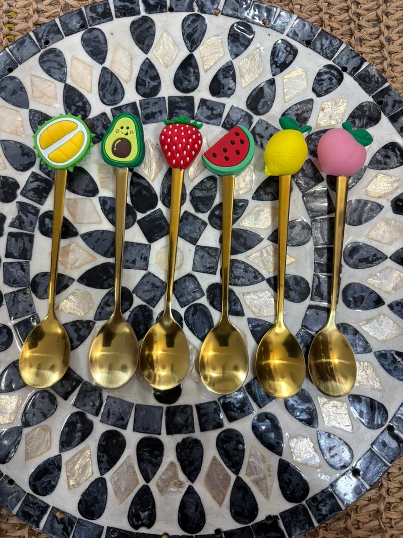 قاشق مرباخوری و دسرخوری استیل طلایی رنگ ثابت وارداتی ساخت چین طرح میوه ۶ عدد