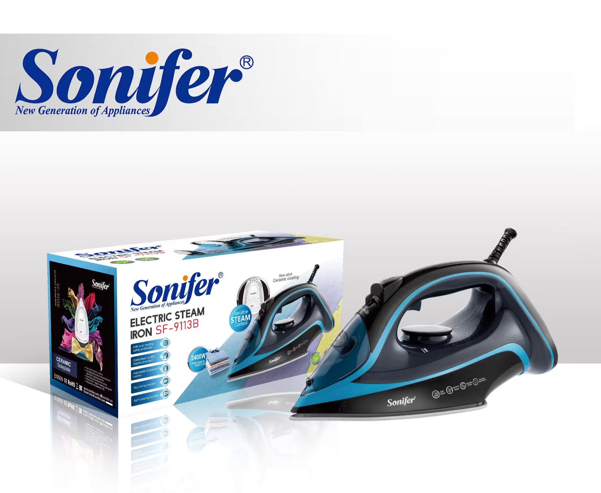 اتو بخار مارک SONIFER وارداتی ساخت چین کد ۹۱۱۳ جنس کف سرامیکی توان ۲۴۰۰ وات