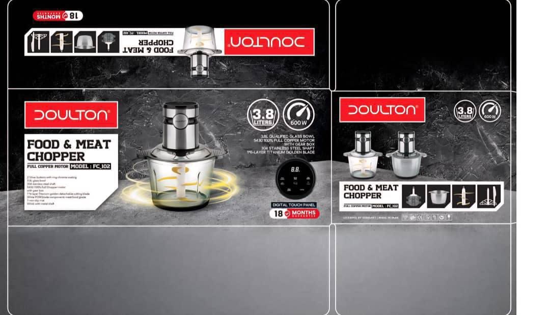 خردکن مارک دالتون دارای دو مخزن ۳/۸ لیتری یکی استیل یکی پیرکس ۲ عدد تیغه ۶ لبه تیتانیوم موتور ۶۰۰ وات واقعی با ۱۸ ماه گارانتی