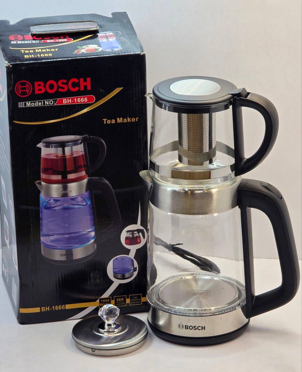 چایساز کتری و قوری برقی مارک BOSCH وارداتی ساخت چین مدل روهمی جنس پیرکس توان ۱۸۰۰ وات