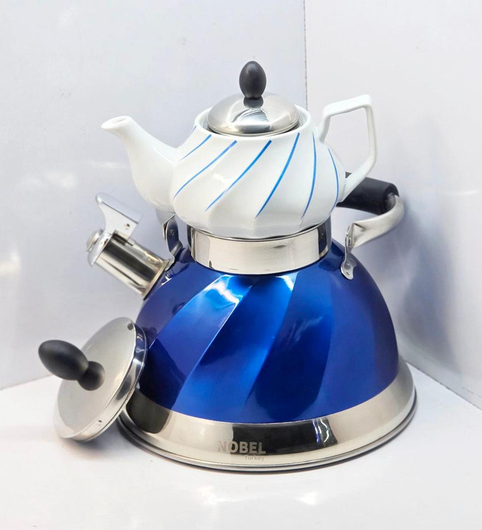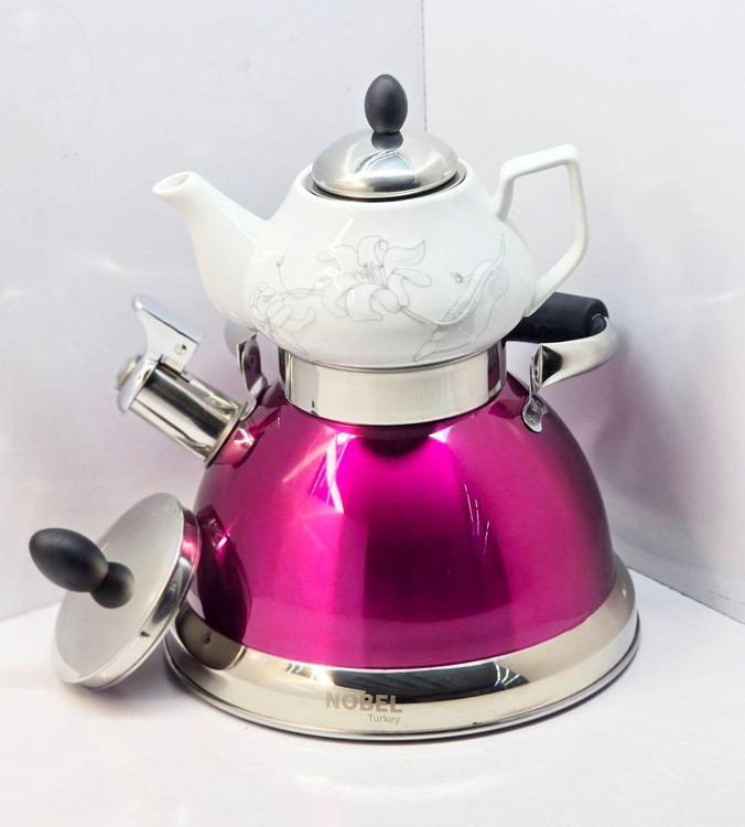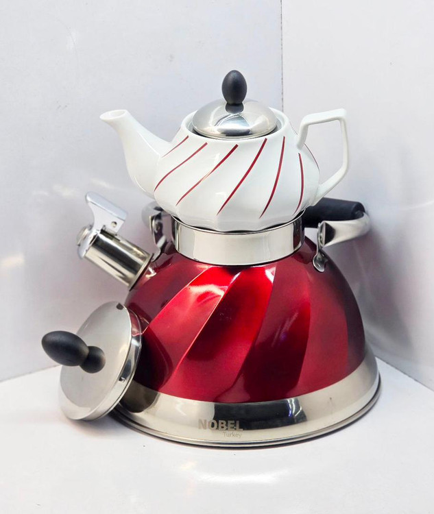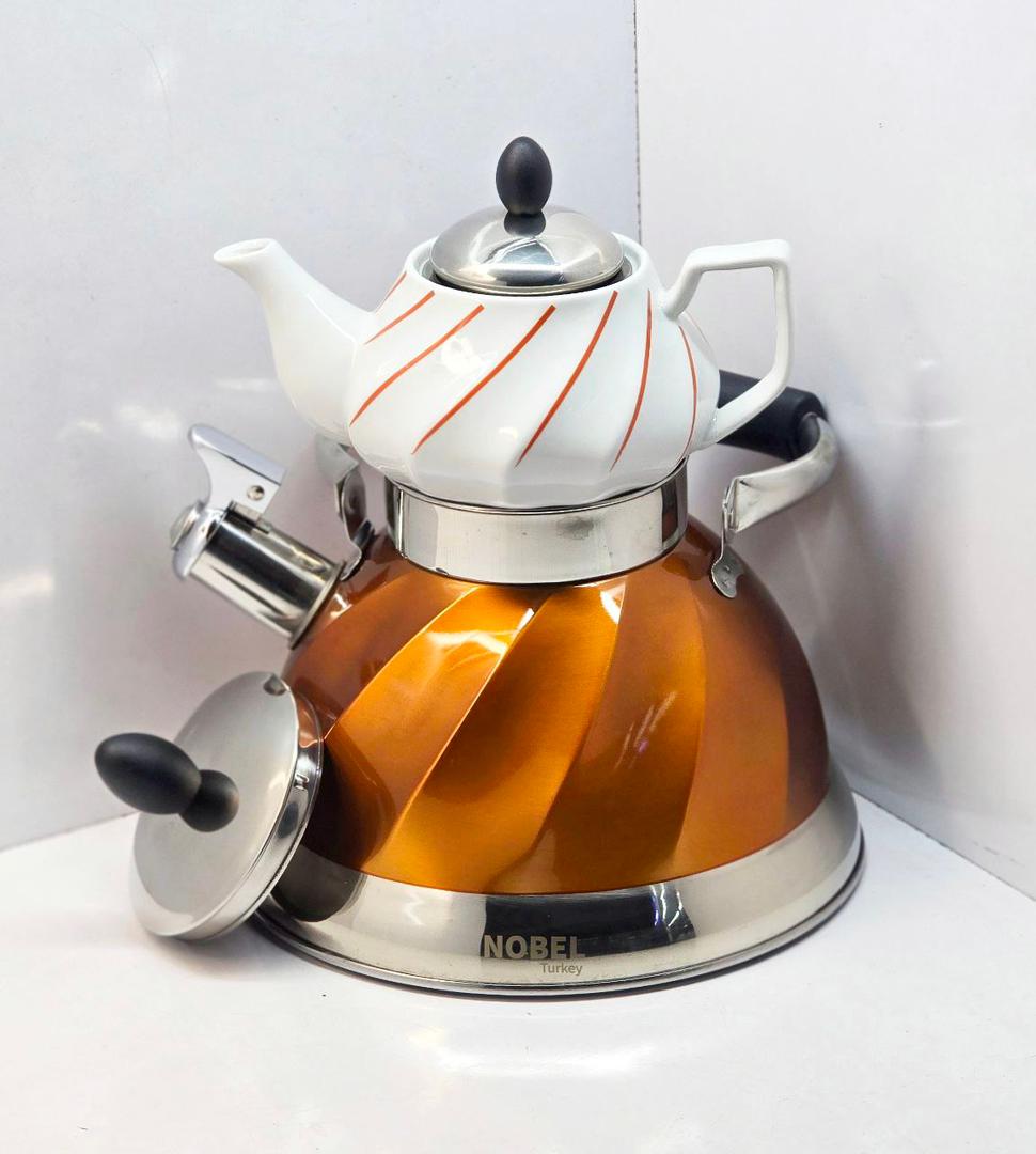 کتری قوری مارک Nobel وارداتی ساخت چین مدل سوتی جنس کف چدن حجم کتری 3 لیتر