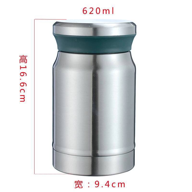 فلاسک غذا وارداتی ساخت چین، ساخته شده از استیل ضد زنگ ۳۰۴ با کیفیت بالا و حک شده روی بدنه. ظرفیت ۶۲۰ میلیلیتر، مناسب برای نگهداری غذای گرم و سرد تا بیش از ۳ ساعت. همراه با قاشق و کیف حمل کاربردی.