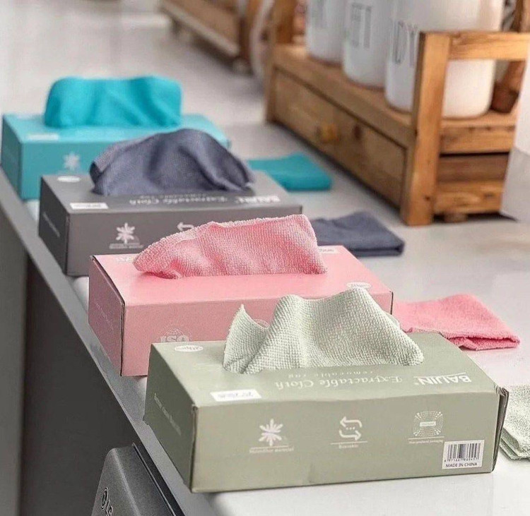 پک دستمال وارداتی ساخت چین شامل ۲۰ دستمال جنس میکروفایبر رنگبندی