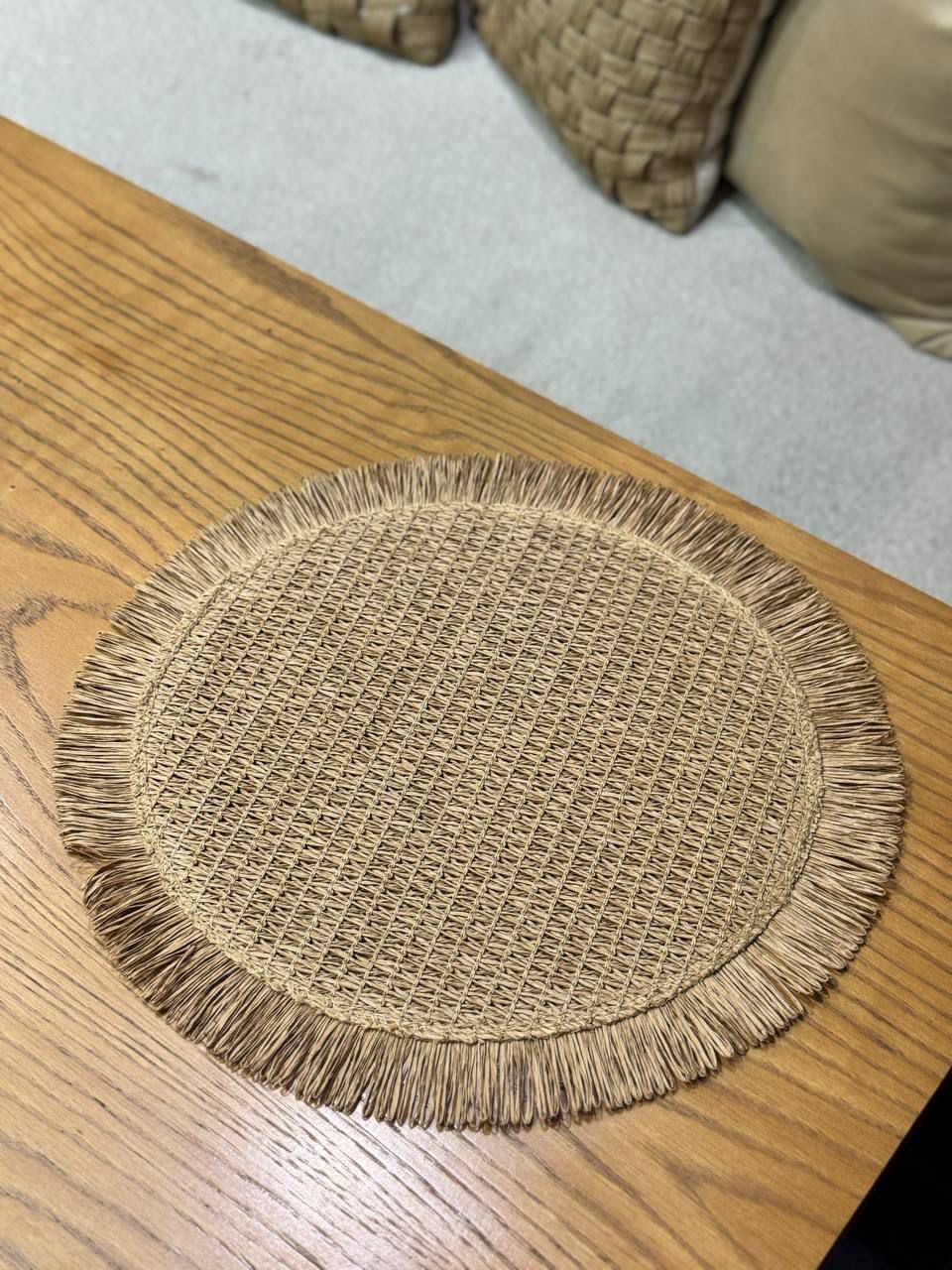 زیربشقابی وارداتی ساخت چین طرح گرد ریش دار جنس حصیر و کنف