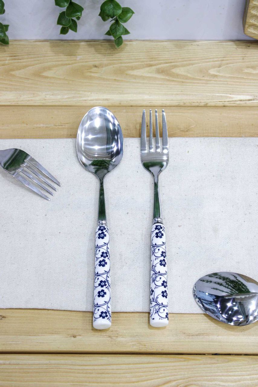سرویس قاشق و چنگال گل آبی با طراحی زیبا و کیفیت بینظیر، انتخابی شیک برای میز پذیرایی شماست.