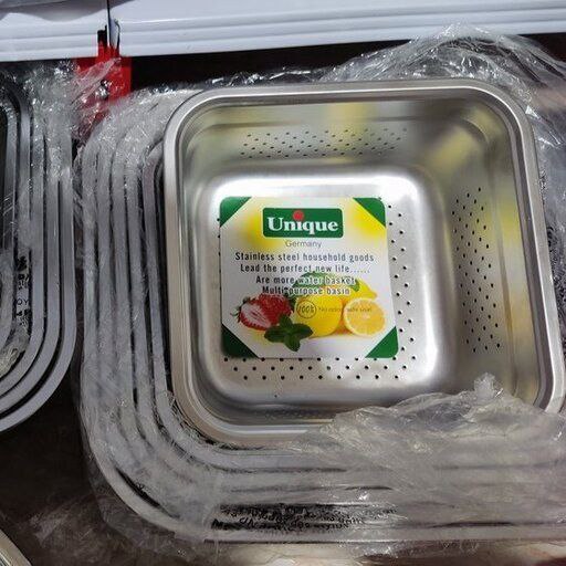 سرویس آبکش مارک یونیک مدل مربعی، ساخته شده از استیل نگیر و ضخیم، انتخابی حرفهای برای آشپزخانههای شیک و مدرن است.