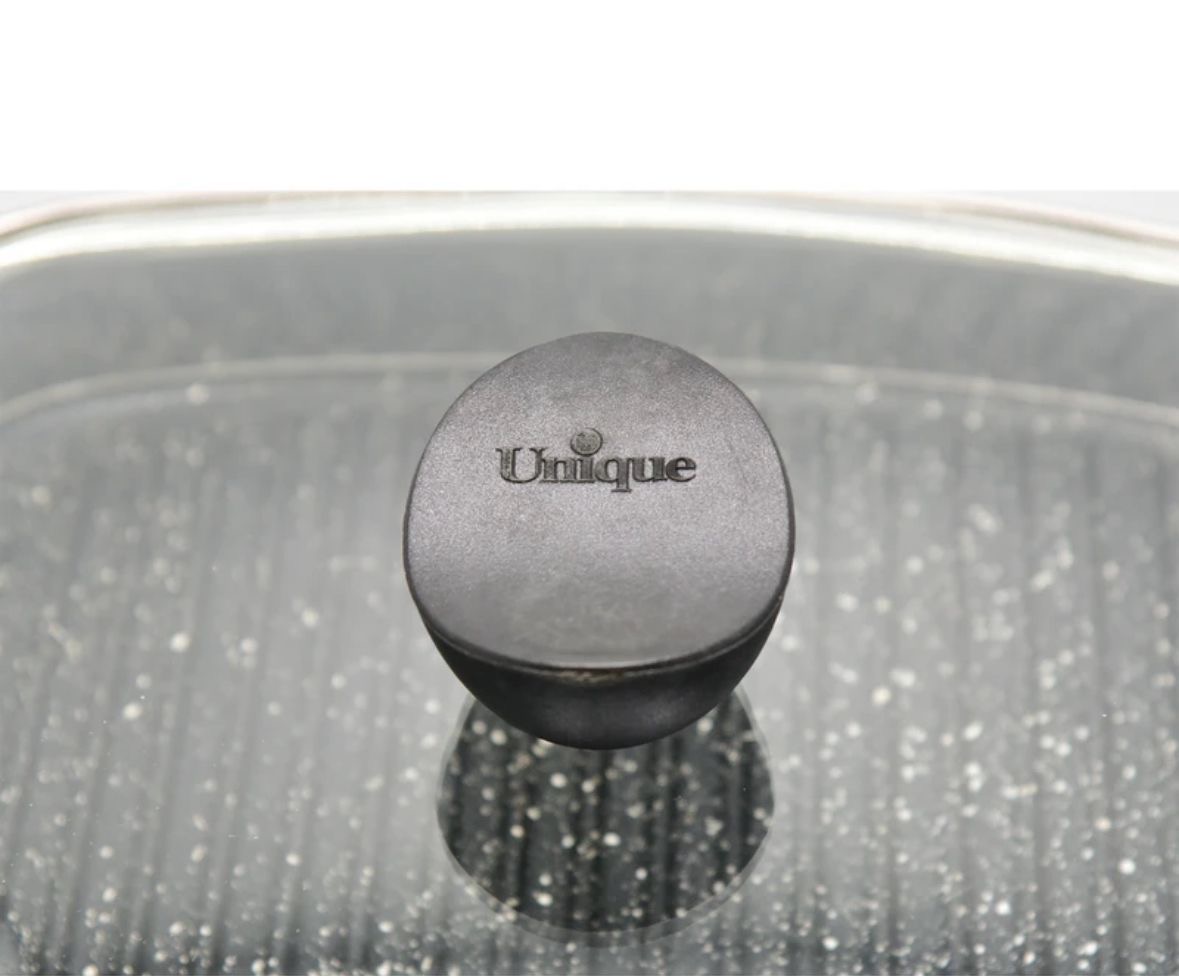 تابه گریل مارک یونیک (Unique) مدل گرد قطر ۳۰ سانت یک انتخاب فوقالعاده برای پخت استیک، مرغ، سبزیجات گریلشده و انواع غذاهای رژیمی است.