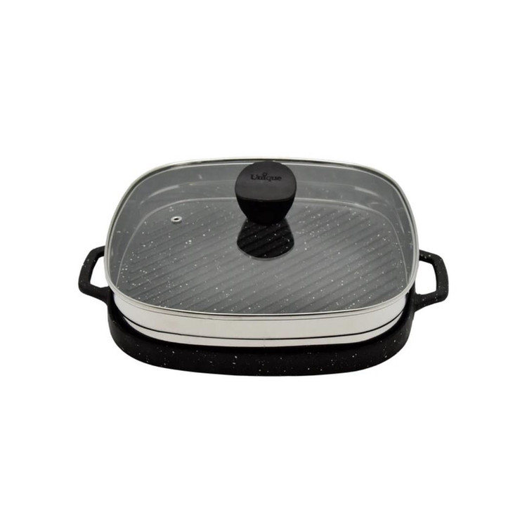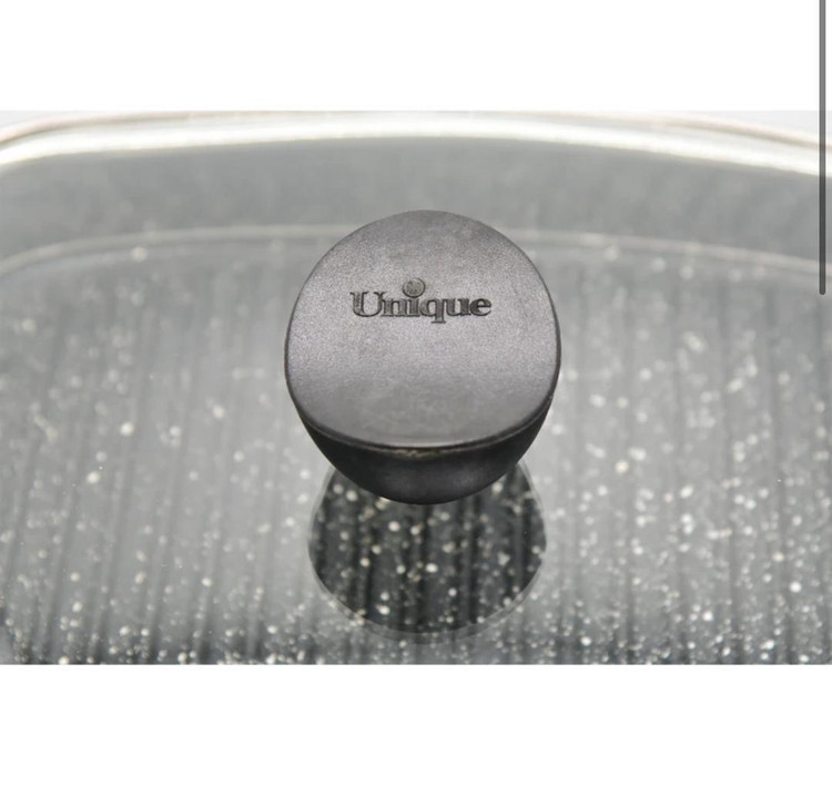 تابه گریل مارک یونیک (Unique) مدل مربع ضلع ۳۰ سانت از بهترین تابههای گریل چدنی اصل شرکتی است.