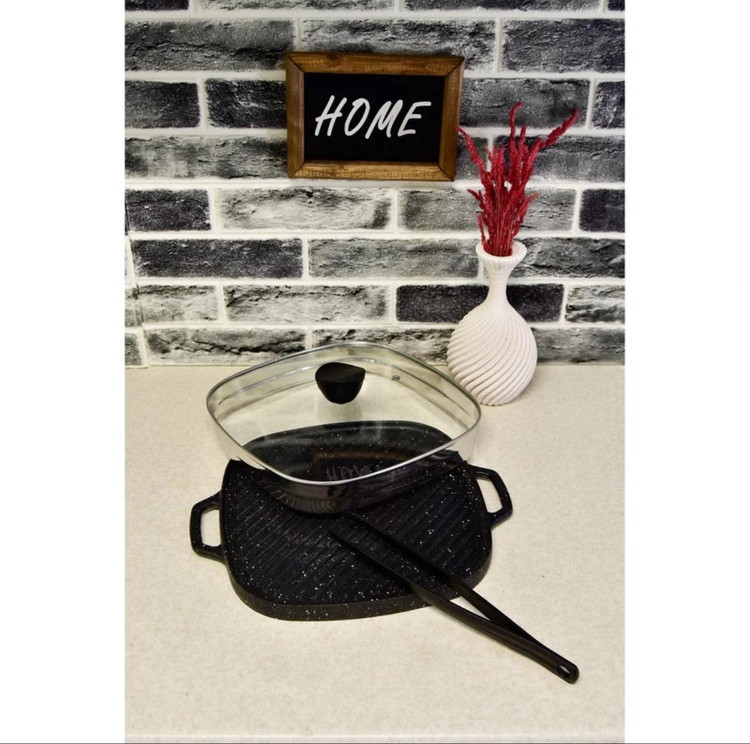به همراه این محصول، انبر مخصوص گریل ارائه میشود تا استفاده از تابه راحتتر و حرفهایتر باشد.