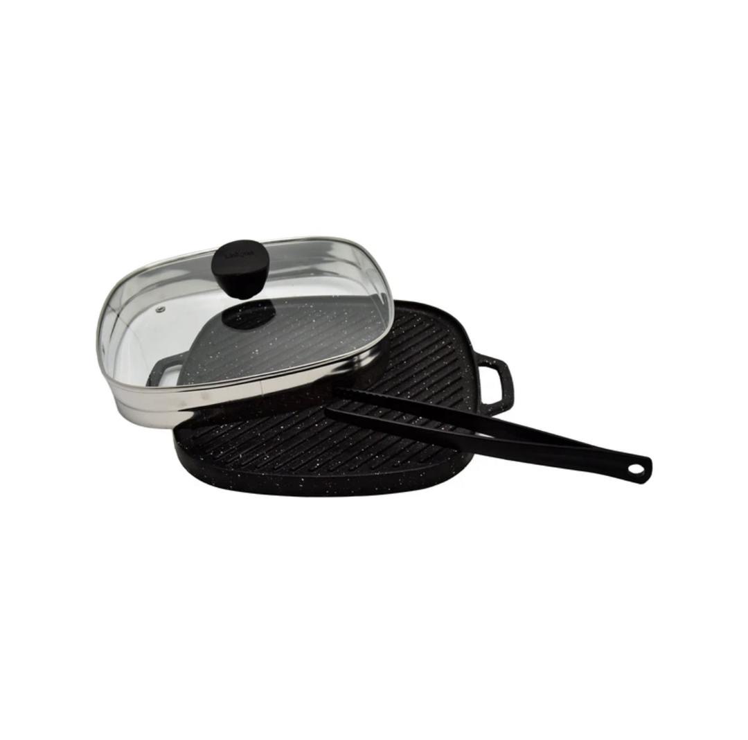 به همراه این محصول، انبر مخصوص گریل ارائه میشود تا استفاده از تابه راحتتر و حرفهایتر باشد.