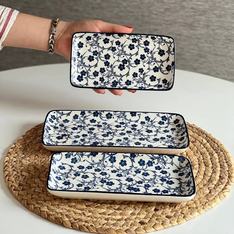 رولت خوری دنی هوم مدل شکوفه آبی، با جنس چینی و سرامیک باکیفیت، یک ظرف شیک و کاربردی برای سرو رولت، شیرینی، دسر و مزه است. این مدل در سایز مستطیل کوچک ۱۸×۱۰ سانت طراحی شده و برای پذیرایی روزمره و مهمانی بسیار مناسب است.
