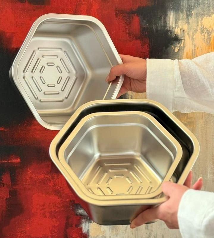 لگن ۶ ضلعی وارداتی سایز ۲۰ با جنس استیل درجه یک، یک انتخاب بادوام، کاربردی و زیبا برای آشپزخانه است. این لگن با طراحی ششضلعی، علاوه بر ظاهر متفاوت، استحکام خوبی ارائه میدهد و برای شستوشو، ترکیبکردن مواد، آمادهسازی غذا و استفاده روزمره کاملاً ایدهآل است. مقاومت بالا در برابر خطوخش و زنگزدگی، این محصول را به گزینهای مناسب برای استفاده طولانیمدت تبدیل کرده است.