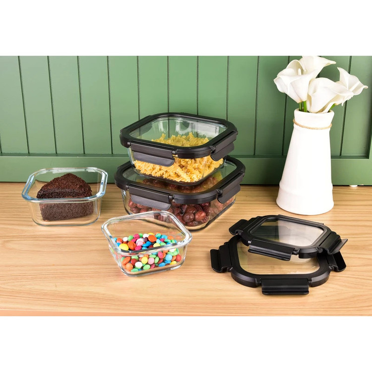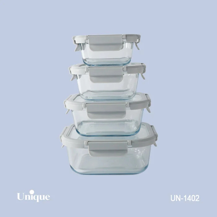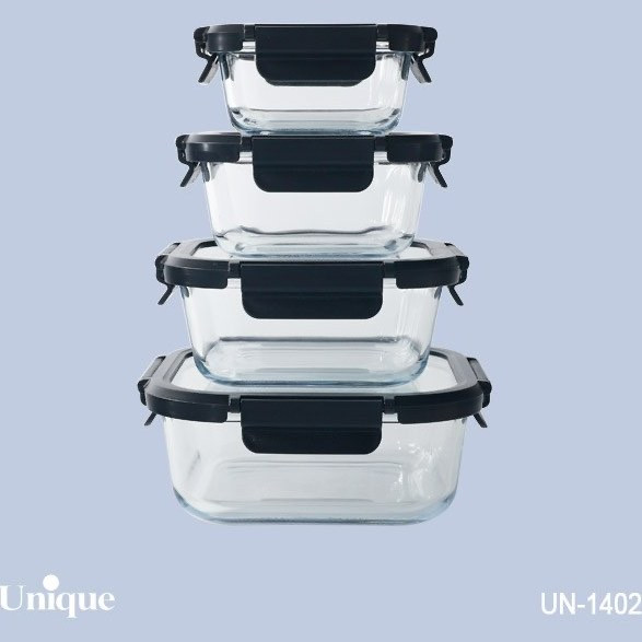 تاپر مارک یونیک وارداتی ساخت چین ۴ تکه درب دار مدل مربع کد un-1402 جنس پیرکس