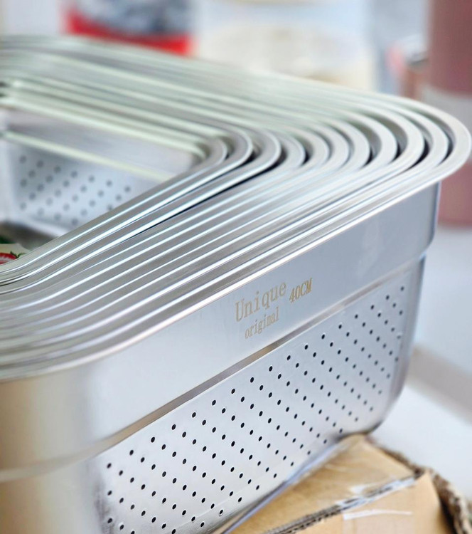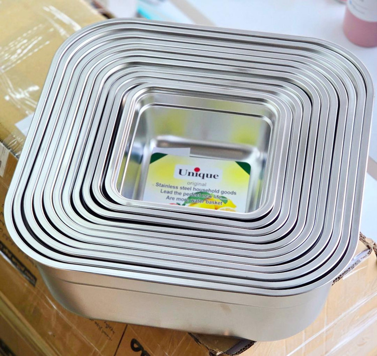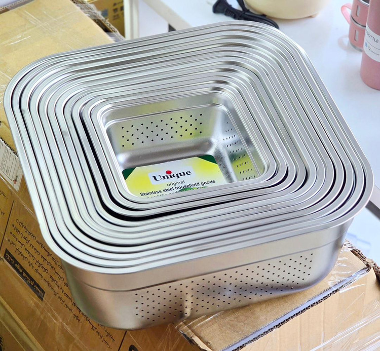 آبکش و لگن مارک یونیک اصلی سایز ۲۶ وارداتی ساخت چین مدل مربع جنس استیل سنگین درجه یک