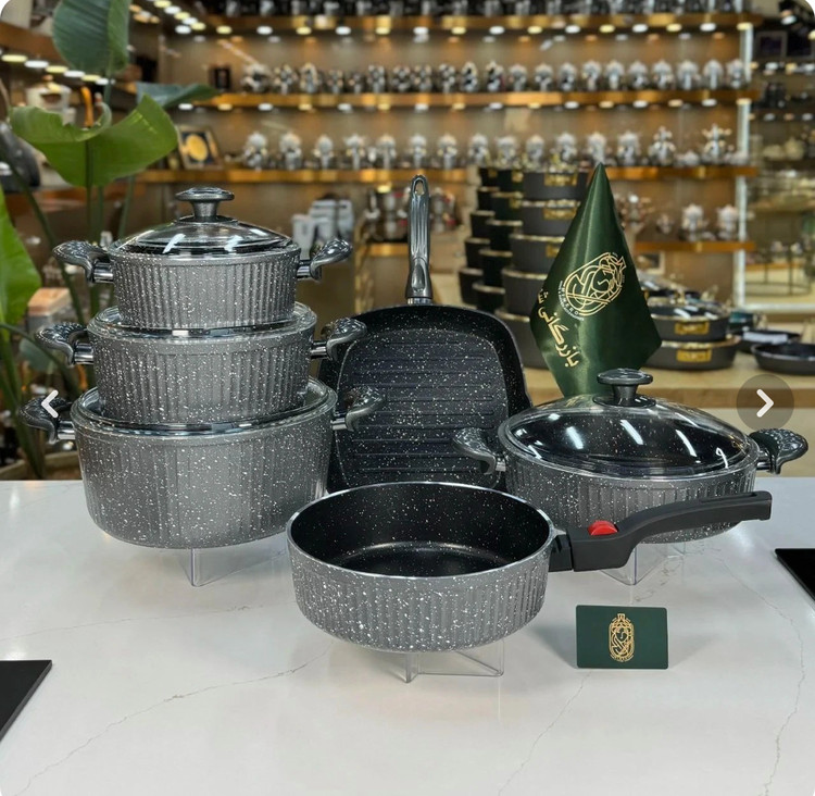 این مجموعه شامل قابلمههای سایزهای ۲۰، ۲۴، ۲۸، تابه دودسته دردار ۲۸ و تابه تکدسته ۲۴ و تابه گریل تکدسته مربع سایز ۲۸ است که همه نیازهای آشپزخانه شما را پوشش میدهد