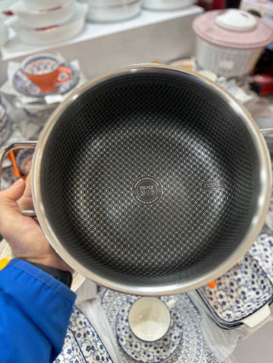 قابلمه وارداتی ساخت چین سایز ۲۶ با جنس استیل ۳۱۶ ضد زنگ و پوشش نچسب با کیفیت بسیار بالا، همراه با درب پیرکس مقاوم، مدل داخل زنبوری ضد خط و خش انتخابی عالی برای آشپزی سالم و راحت است. درب پیرکس آن امکان مشاهده فرآیند پخت بدون نیاز به برداشتن درب را فراهم میکند و پوشش نچسب از چسبیدن غذا جلوگیری میکند.