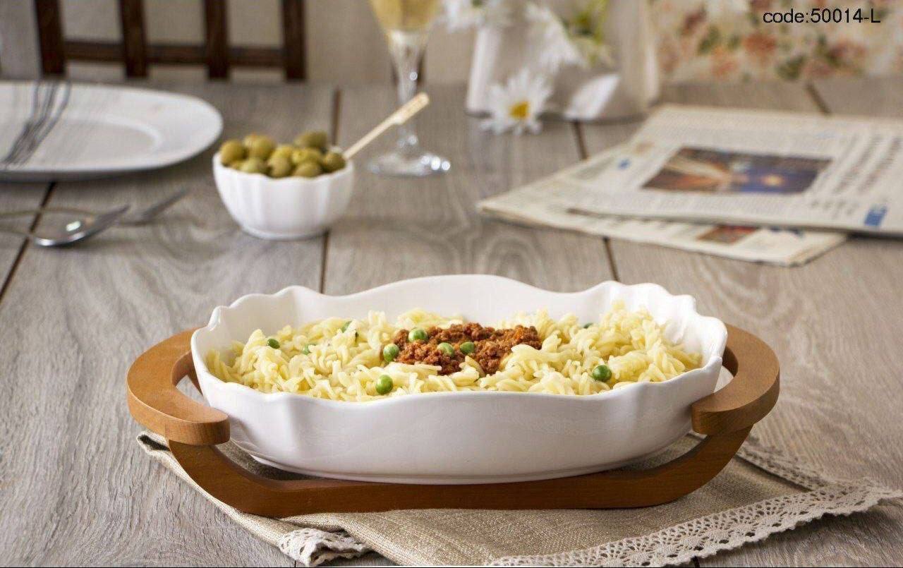 تابه سرامیکی با زیره چوب راش گرجستان مدل بیضی لب دالبر سایز بزرگ با طراحی شیک ، انتخابی عالی برای سرو غذاهای خانوادگی و مهمانیهاست. دارای جنس سرامیک مقاوم می باشد.