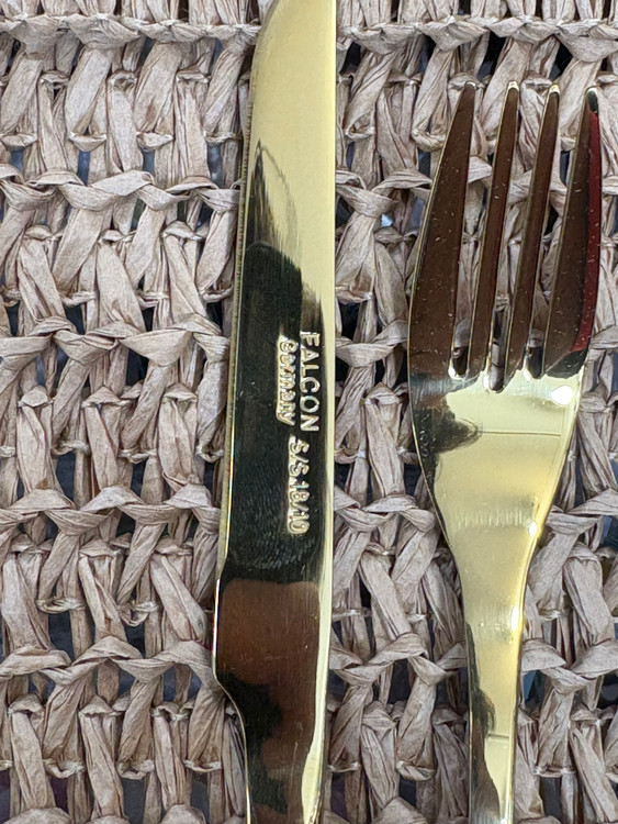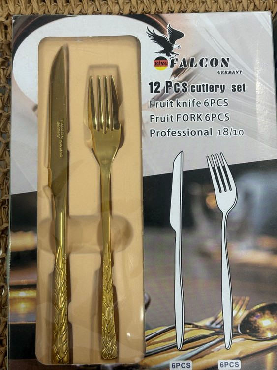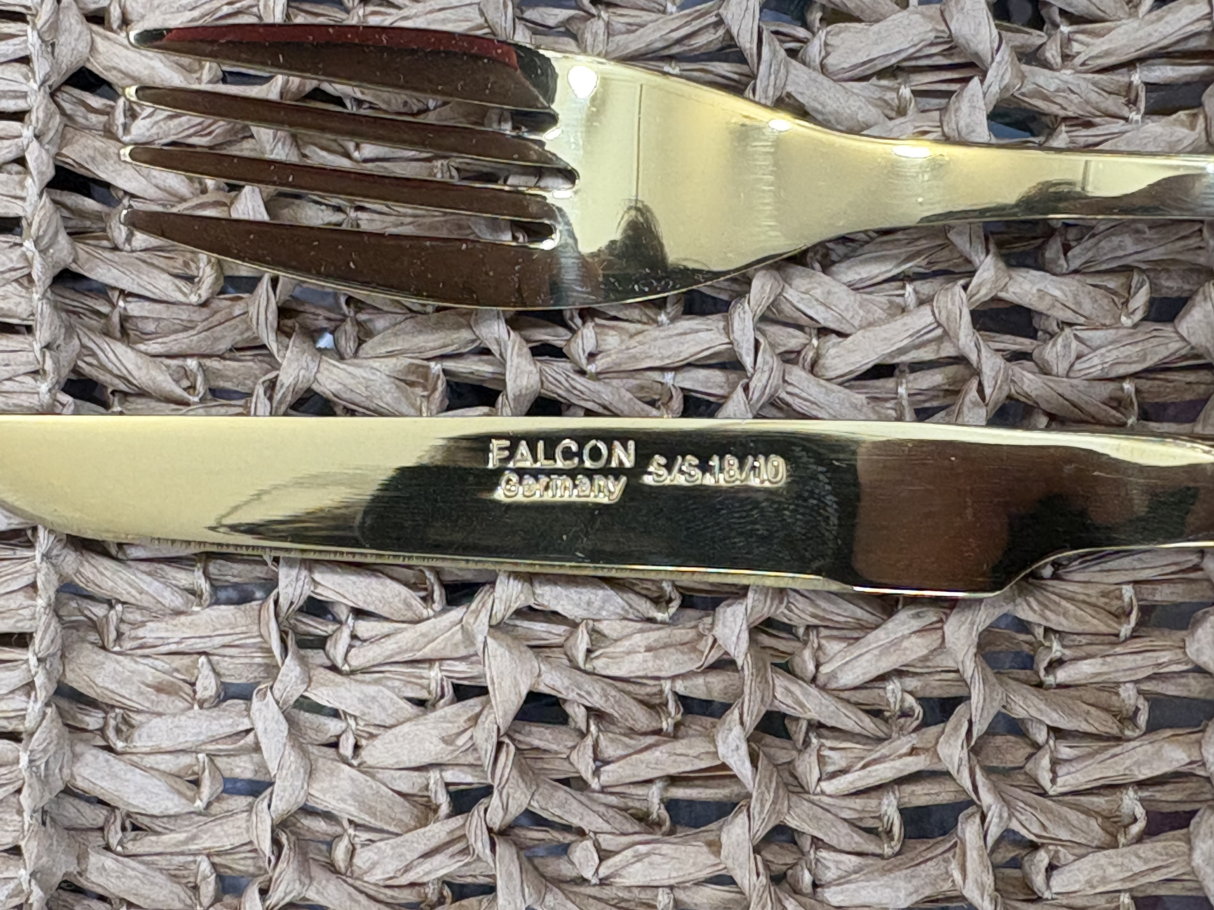 سرویس کارد و چنگال مارک فالکون از جنس استیل ۱۸۱۰ درجه یک ساخته شده ، استحکام و وزن بسیار عالی دارد. این محصول کاملاً ضدزنگ بوده و در برابر خط و خش مقاوم است.