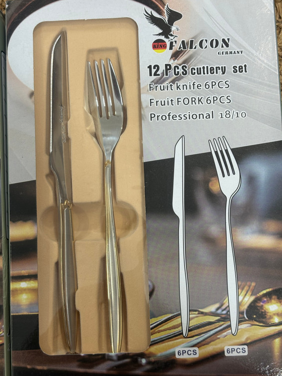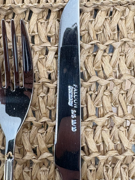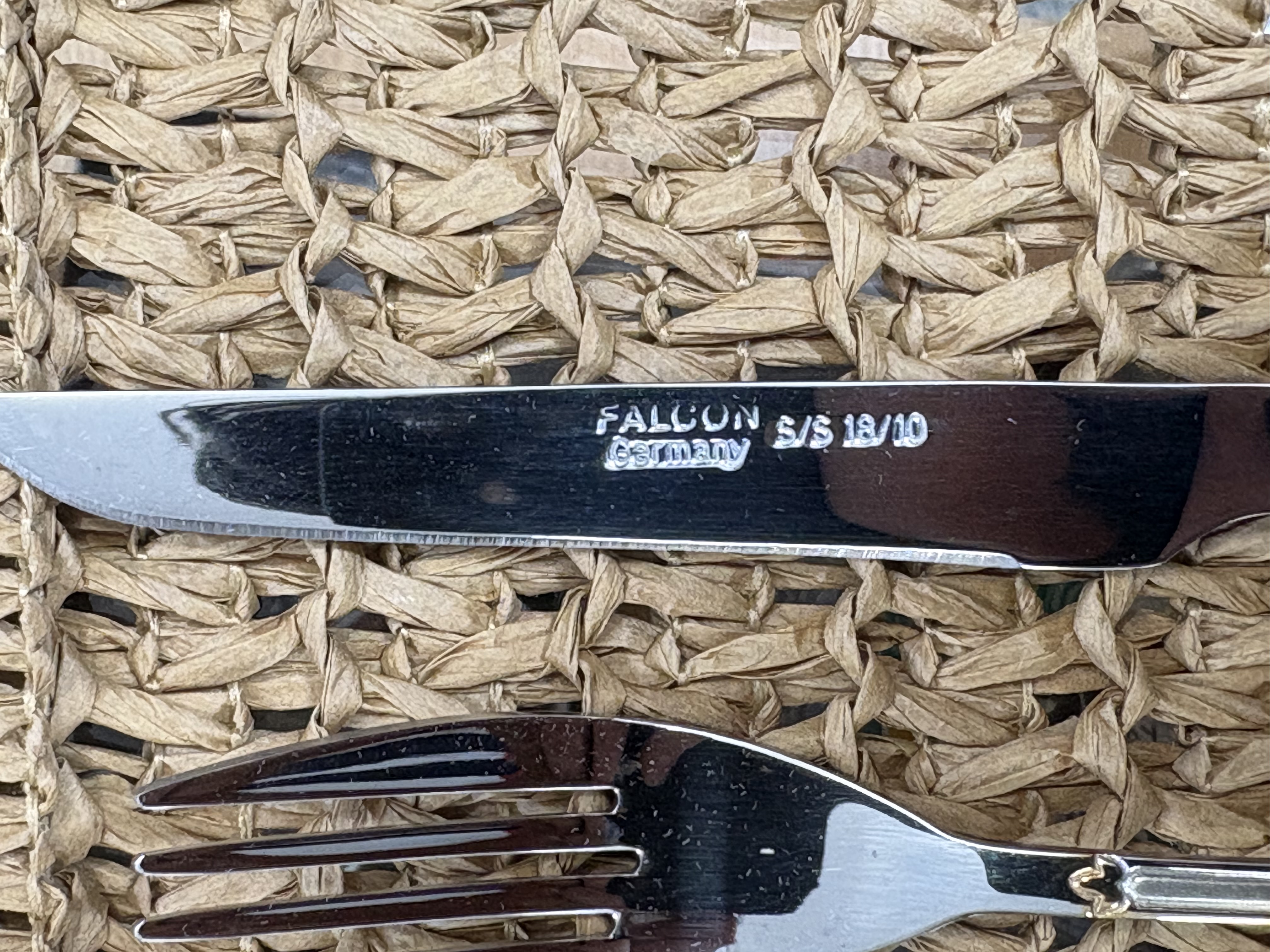 سرویس کارد و چنگال مارک فالکون از جنس استیل ۱۸۱۰ درجه یک ساخته شده ، استحکام و وزن بسیار عالی دارد. این محصول کاملاً ضدزنگ بوده و در برابر خط و خش مقاوم است.
