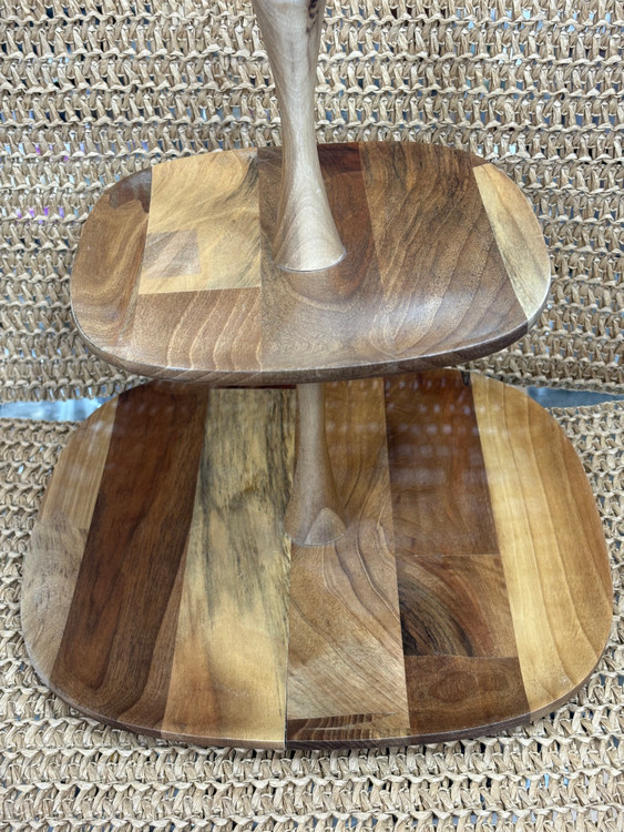 شیرینیخوری دو طبقه مارک آماهوم ساختهشده از چوب گردو طبیعی ضد آب، انتخابی لوکس و کاربردی برای پذیراییهای شیک است. استفاده از چوب گردوی مرغوب با پوشش محافظ ضد آب، دوام بالا و ظاهری گرم و طبیعی به این محصول بخشیده است.