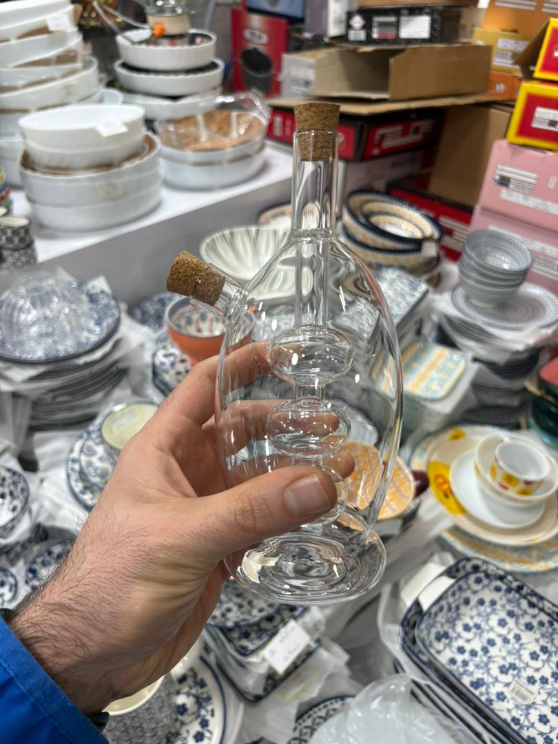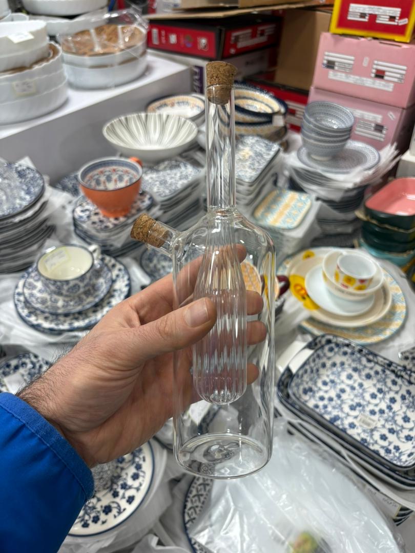 آبلیموخوری پیرکس دو منظوره با طراحی کاربردی و دو خروجی مجزا، گزینهای عالی برای نگهداری و سرو آبلیمو، سرکه و چاشنیهاست. درب چوبپنبهای ظاهر زیبا و بسته شدن مناسب را فراهم میکند.