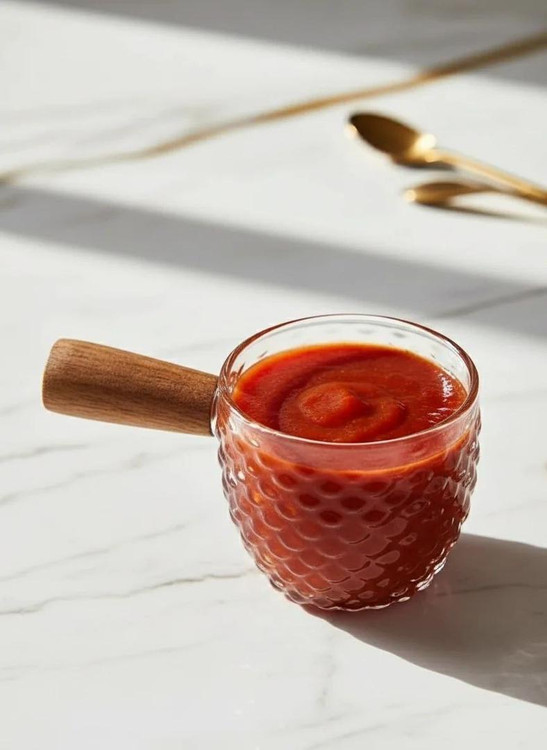 سس خوری پیرکس با دسته بامبو، ترکیبی از زیبایی و کارایی برای میز سرو شماست. بدنه شفاف پیرکس کمک میکند میزان سس یا زعفران بهراحتی دیده شود و دسته بامبو علاوه بر ظاهر شیک، جابهجایی را آسان میکند. این محصول برای سرو سس، زعفران دمکرده، آبلیمو، سرکه و انواع چاشنیها بسیار کاربردی بوده و جلوهای مرتب و حرفهای به میز پذیرایی میدهد.