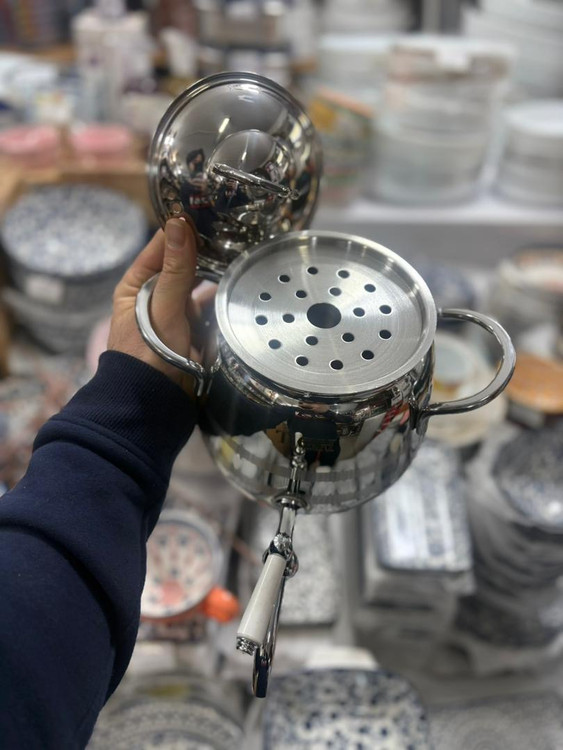 کتری ۲.۵ لیتر شیردار T.GH کد ۳۰۰۰۱ با بدنه استیل ضخیم براق، جلوهای شیک و بادوام به آشپزخانه شما میدهد. کف چدن این محصول باعث توزیع یکنواخت حرارت شده و فرآیند جوش آمدن آب را سریعتر و بهینهتر میکند.