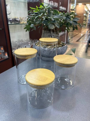 بانکه پیرکس گرد قطر ۱۰ سانت وارداتی ساخت چین درب بامبو واشر دار