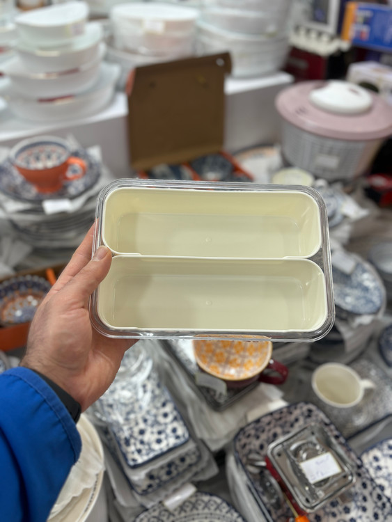 ابعاد ظرف بیرون: ۲۳ در ۱۶ و ارتفاع ۷ سانت