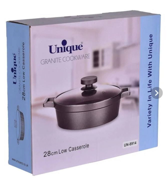تابه دو دسته مارک یونیک اصل شرکتی طرح دیاموند جنس چدن داخل گرانیت درب شیشه ای سایز 28