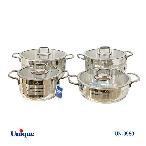 اقلام سرویس: ۸ پارچه (قابلمه سایز ۲۰ و ۲۴ و ۲۸ و تابه دودسته درب دار سایز ۲۸)